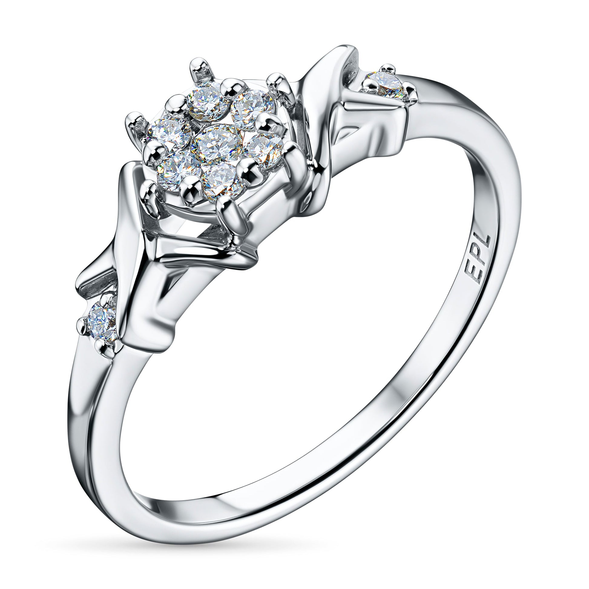 Sterling Silver Ring with 9 Round-Cut Lab-Created Diamonds - 0.124 CT.TW - Luxury Jewelry by LevarJewelz
